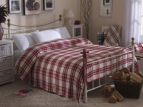 Results Lancashire Textiles - Handwoven Cotton Tartan Checked Textured 228cm x 254cm Throw -Blanket- Bedspre