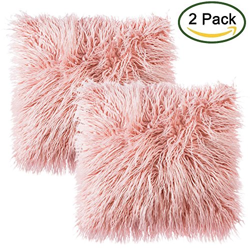 LIVEBOX Faux Fur Cushion Covers Deluxe Home Decorative ~ Faux Fur Throw Cushion Cover LIVEBOX Deluxe Home Decorative Super Soft Plush Mongolian Faux Fur Throw Pillow Cover Cushion Case 18 x 18 Inch Pack of 2 Pink without Inserts SERENECASA SOFT ELEGANT FAUX MONGOLIAN FUR CUSHION COVER 45X45CMS
